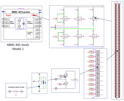 Subcircuit breakdown of the Full detailed MMC-401 Level model in EMTP®