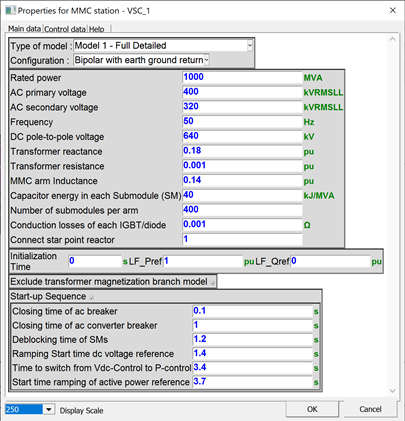 Two different Upper level control strategies are built in the EMTP® MMC model: Vector current control and V/F control. In V/F control, the phase angle and frequency are