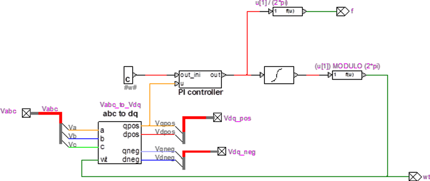 The regulation loops are implemented in the DQ0 reference frame which allows a decoupled control of the active and reactive power. A decoupling between positive