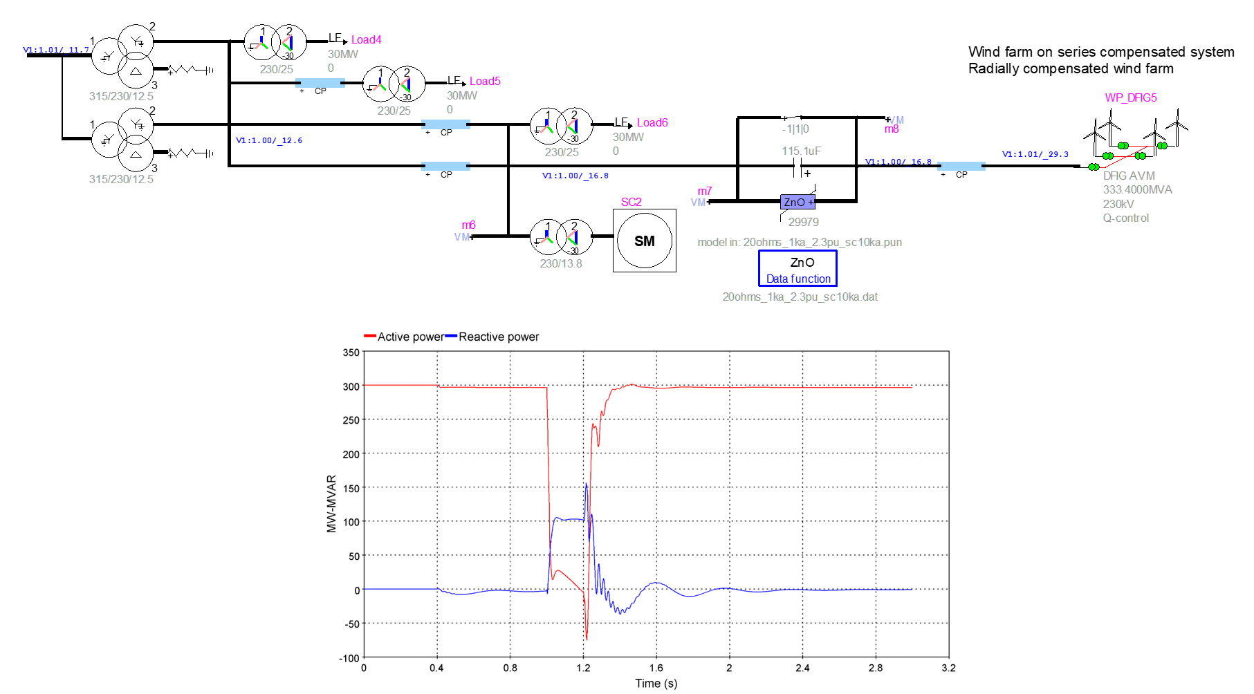 It also includes a three-phase amplifier for quick model aggregation and a Time-Domain Input Impedance scanning device for sub-synchronous control interaction (SSCI) analysis. The models allow you to readily define all the components of the system, such as the number of turbines or PV arrays, their rating, reactive power control at POI, Machine Side Converter (MSC) and Grid Side Converter (GSC) parameters, Coupled/Decoupled Sequence control options, overcurrent protection parameters, crowbar, etc.